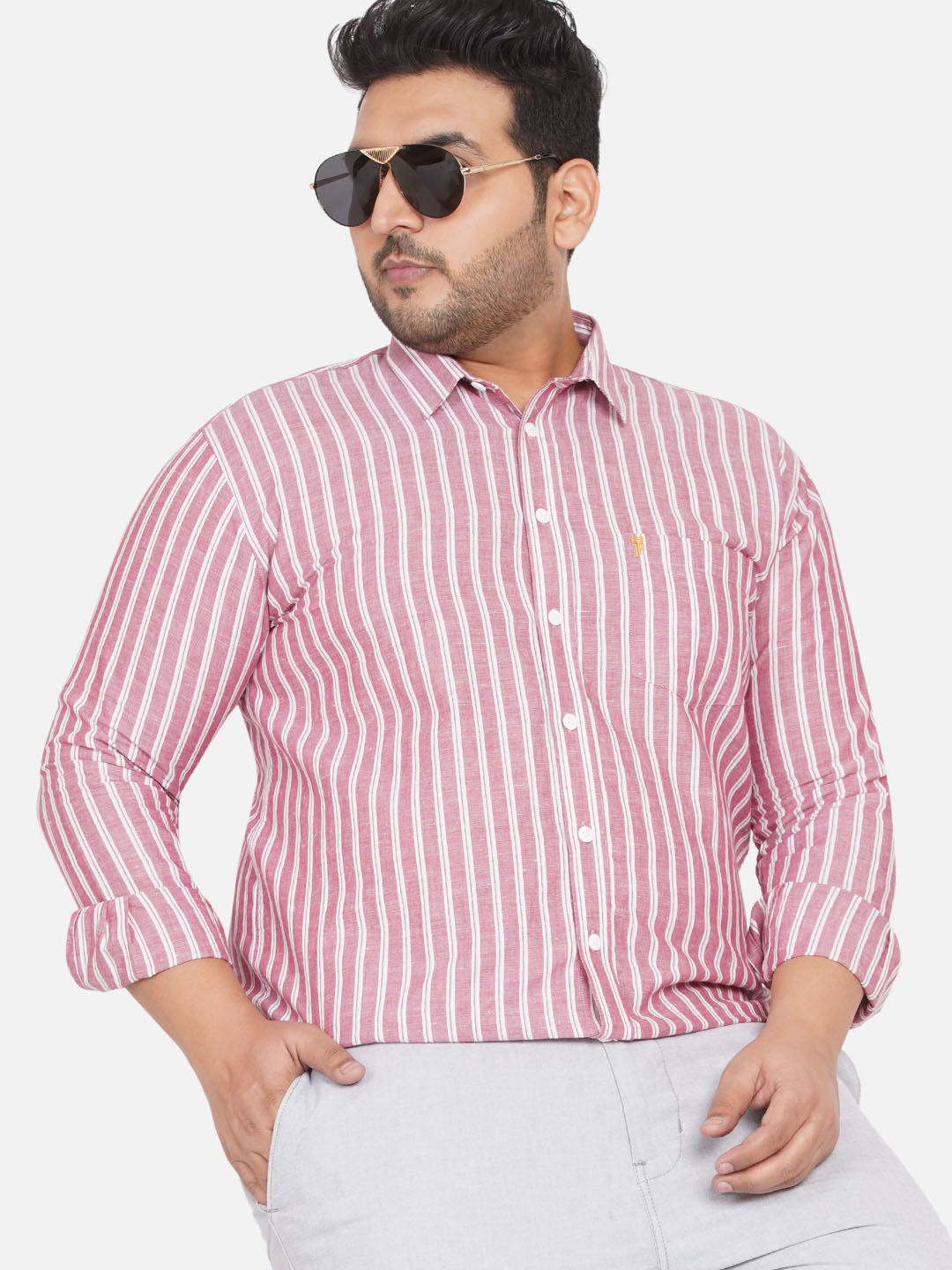 Nexus Coral Linen Stripe Plus Size Shirts For Men