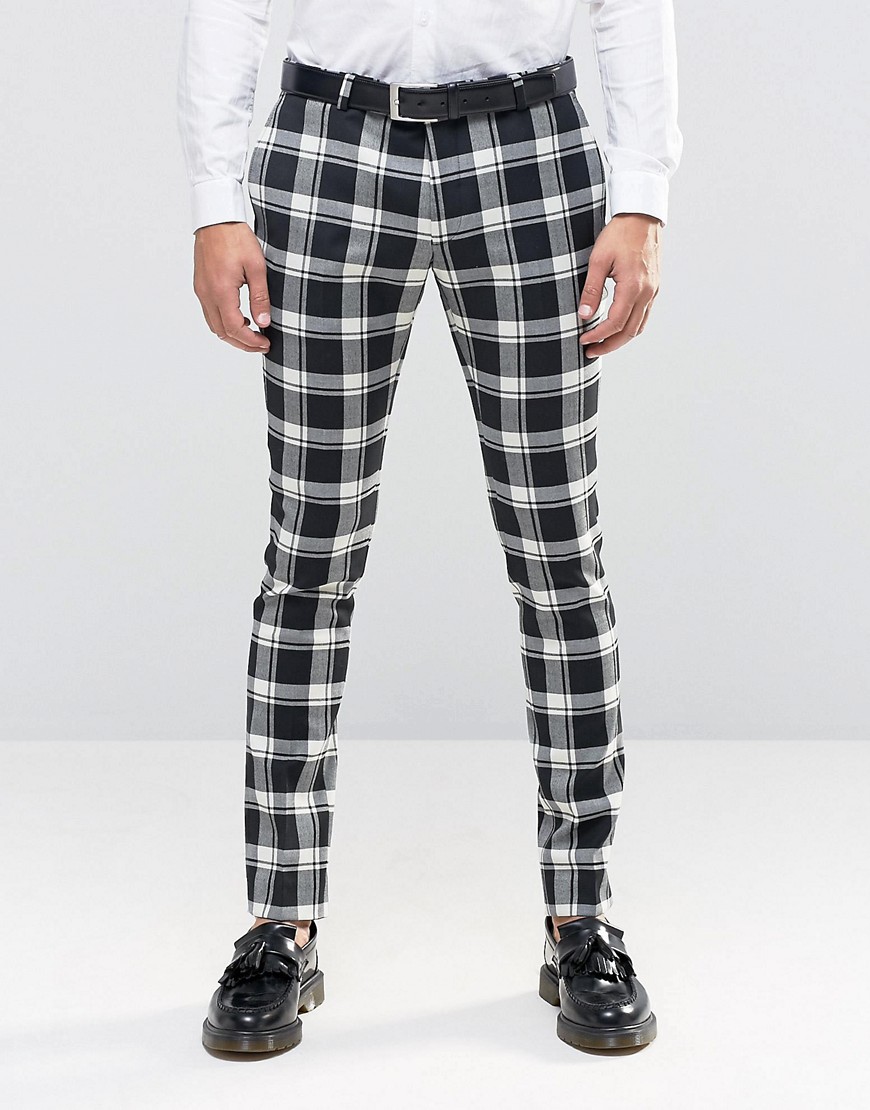 Noose & Monkey Super Skinny Pants In Monochrome Check with Stretch