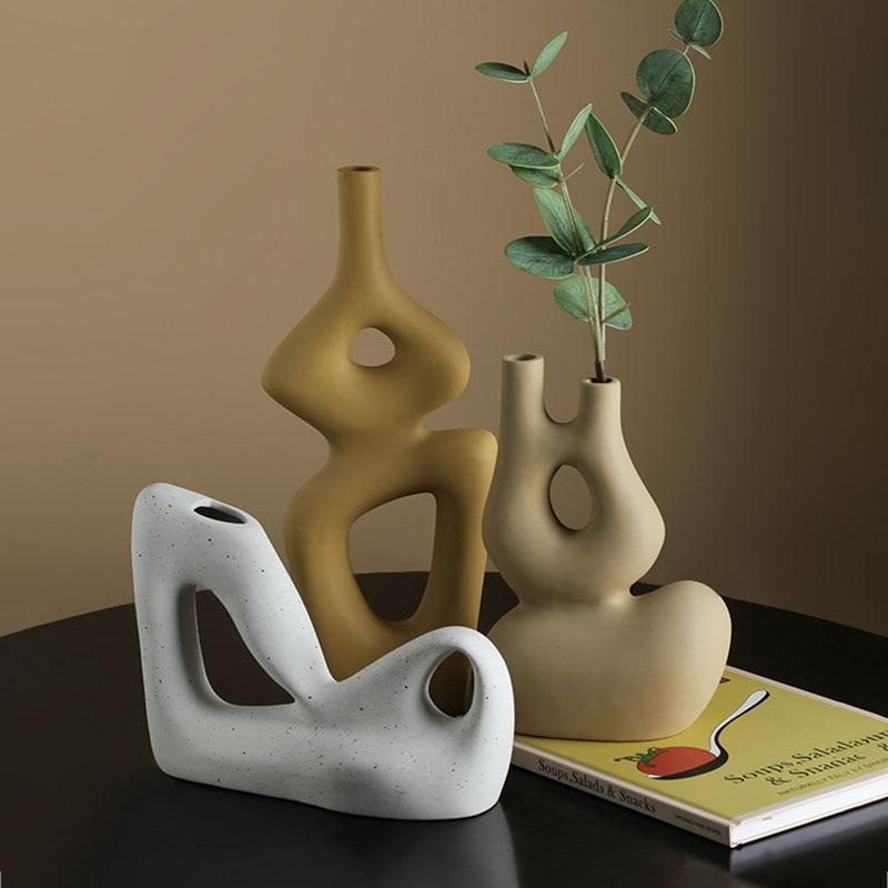 Nordic Art Decoration Simplicity Geometric Vase Ceramic Crafts Living Room Flower Arrangement Home Decoration Furnishings Gifts