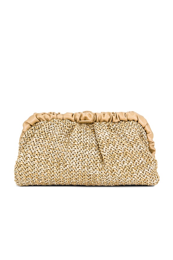 olga berg Amalia Pleated Woven Clutch in Natural | REVOLVE