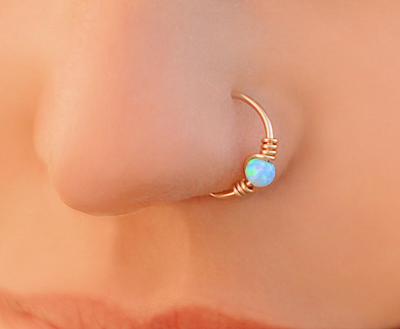 Opal nose ring, Nose piercing, Gold fire opal piercing, Piercing nose ring, Boho style, gift for her
