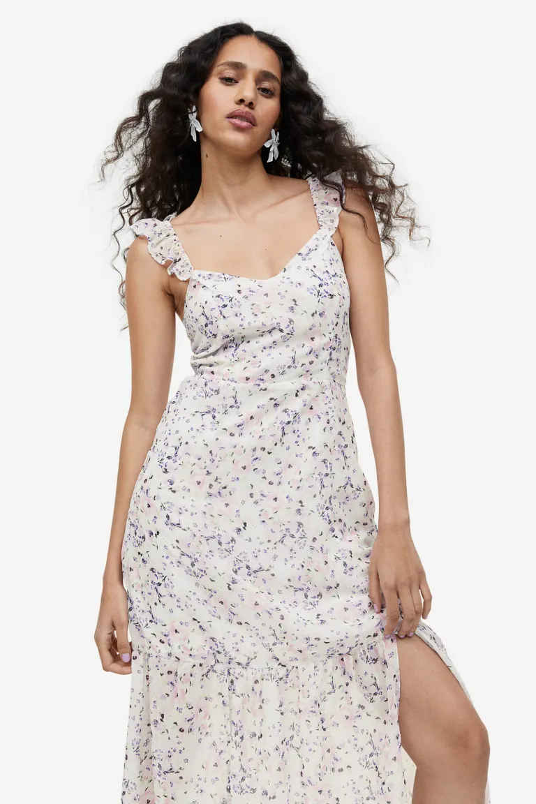Open-backed Chiffon Dress - White/floral - Ladies