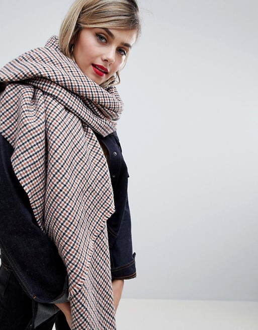 oversized square scarf in tweed check