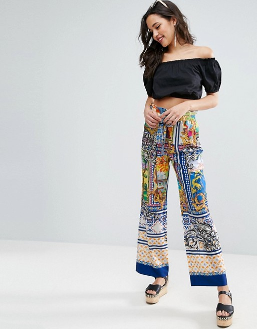 Paperbag Waist Postcard Print Palazzo Pants Co-ord