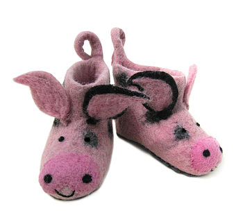 Paris Pig Felt Slippers