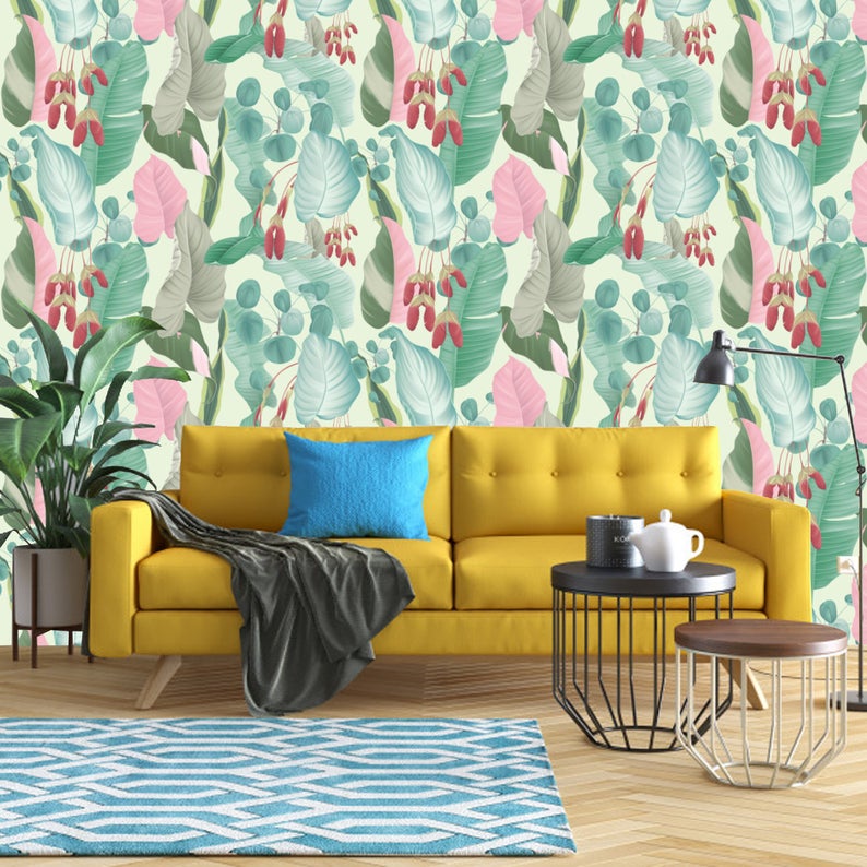 Pastel Leaf Tropical Wallpaper Traditional Non-woven or Peel image 0