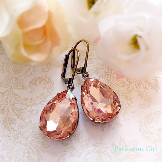 Peach Earrings - Summer Jewelry - Bridesmaid Gift - Victorian Earrings - Victorian Jewelry - CAMBRIDGE Peach
