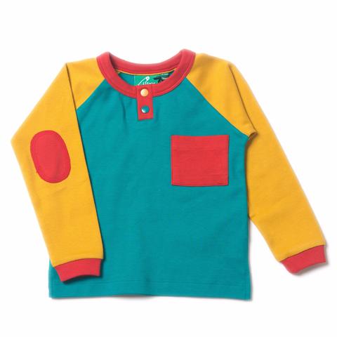 Peacock Blue Colour Block Tee - Organic Fairtrade Cotton