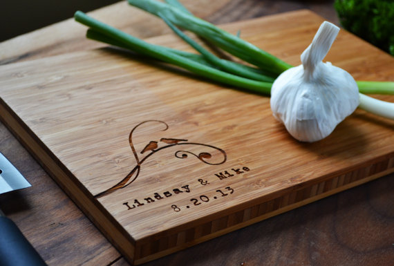 Personalized Cutting Board "Two Birds" Bamboo Wood for Wedding or Anniversary gift