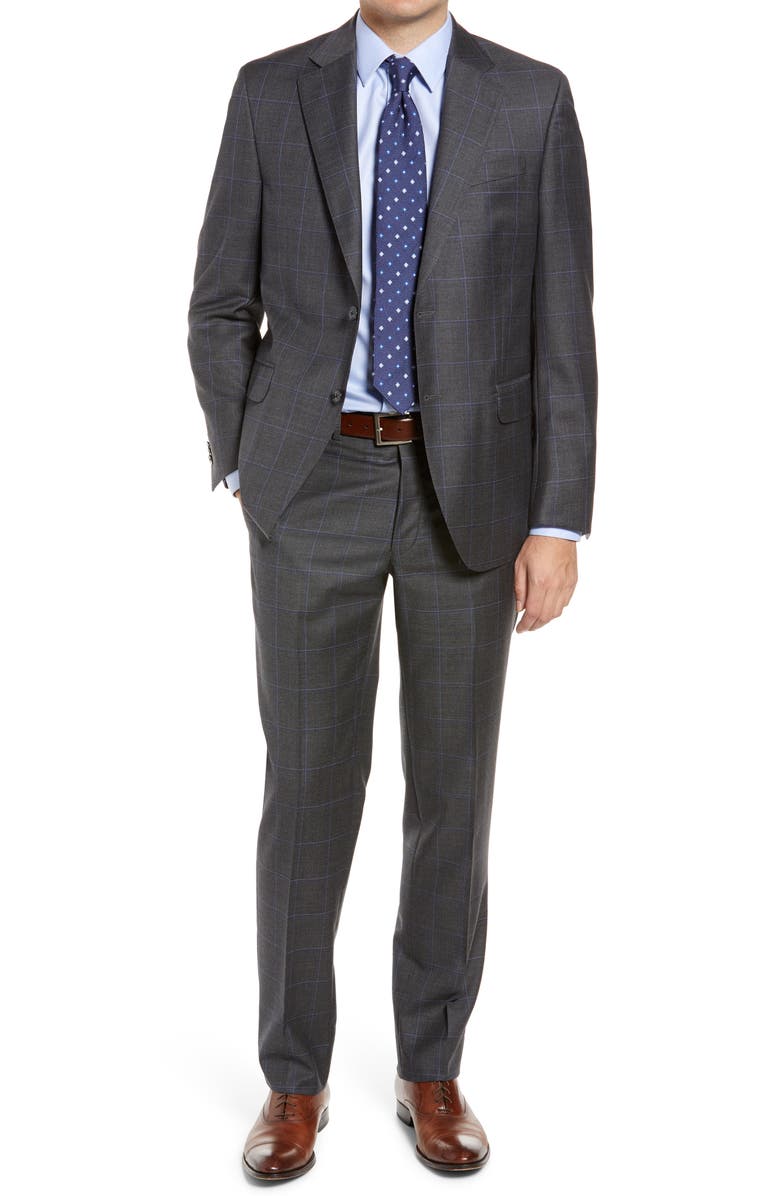 PETER MILLAR Flynn Classic Fit Windopane Wool Suit, Main, color, CHARCOAL