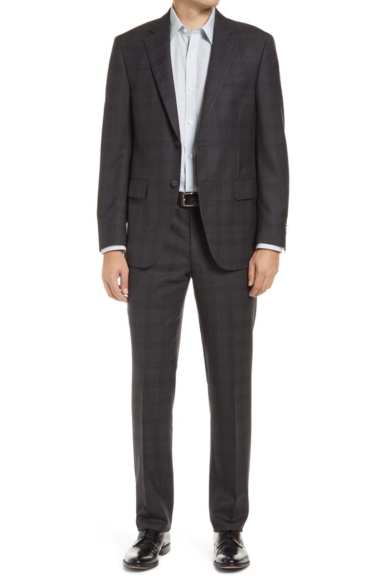 PETER MILLAR Flynn Plaid Wool Suit, Main, color, CHARCOAL
