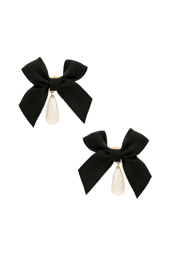 petit moments Bow Drop Pearl Earrings in Black | REVOLVE