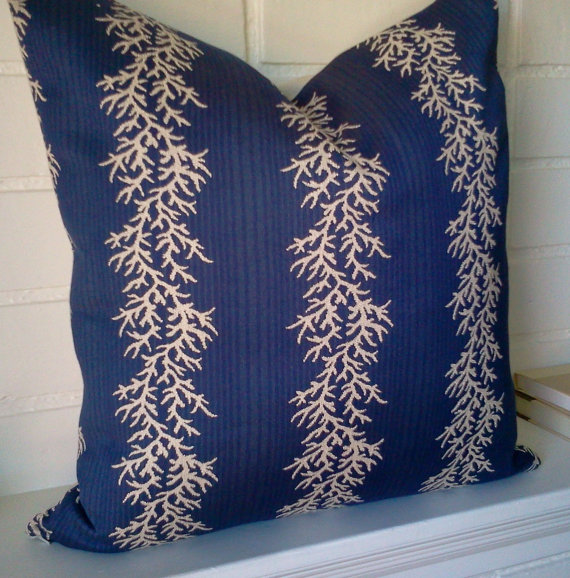 PILLOW COVER Cream coral on blue background one 20 inch pillow cover decorative pillow cover