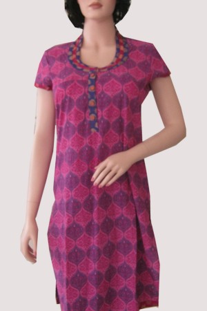 Pink Cotton Printed Casual Kurti M-122