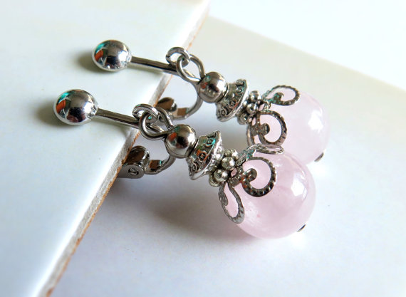 Pink Quartz Dangle Clip On Earrings - Non-Pierced Ears
