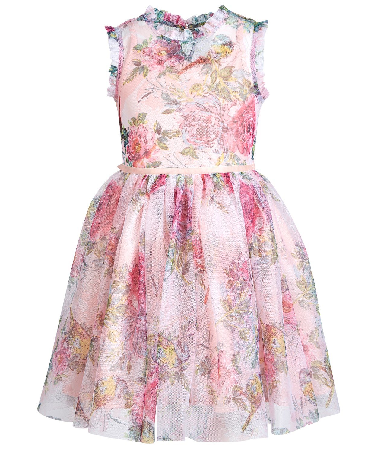 Pink & Violet Little Girls Floral-Print Mesh Dress, Size 6/Pink