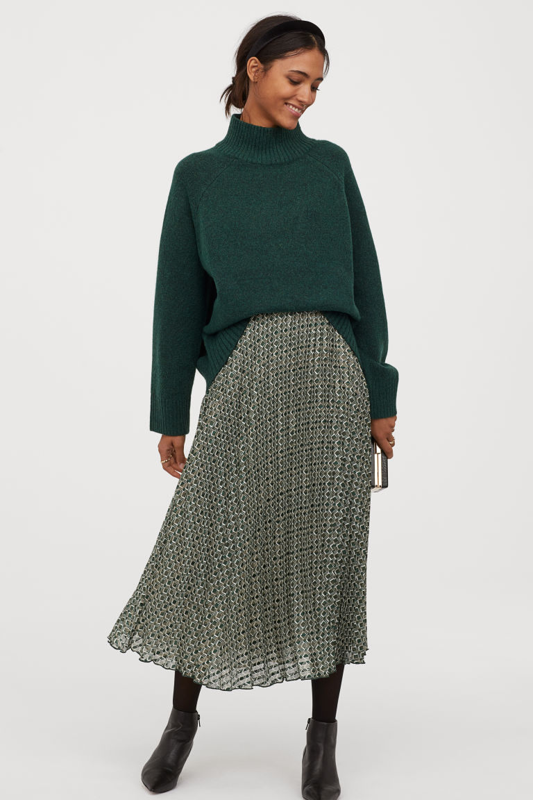 Pleated Skirt - Dark green/patterned - Ladies | H&M US