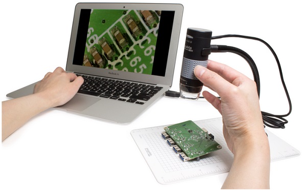 Plugable 250X Digital USB Microscope with Observation Stand - USB 2.0, 0x-250x Magnification, 4 SMD LEDs (dimmable), CMOS Sensor, EtronTech eSP570A Controller - USB2-MICRO-250X at TigerDirect.com