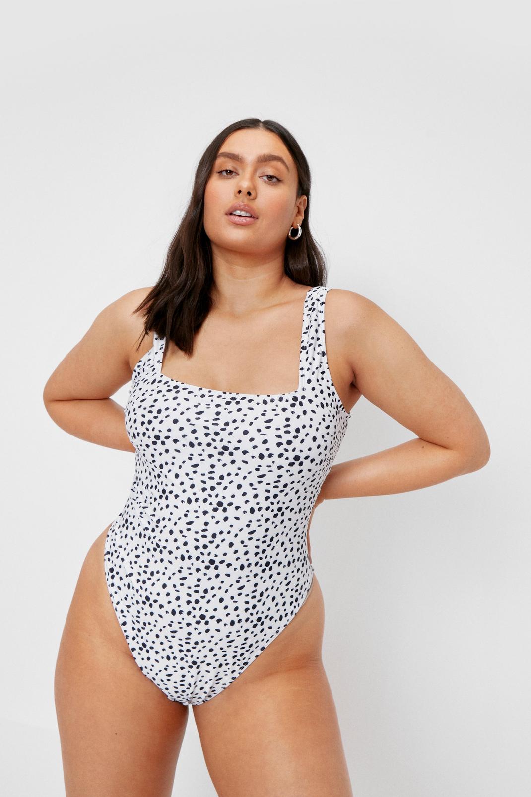 Plus Size Dalmatian Print Twist Swimsuit