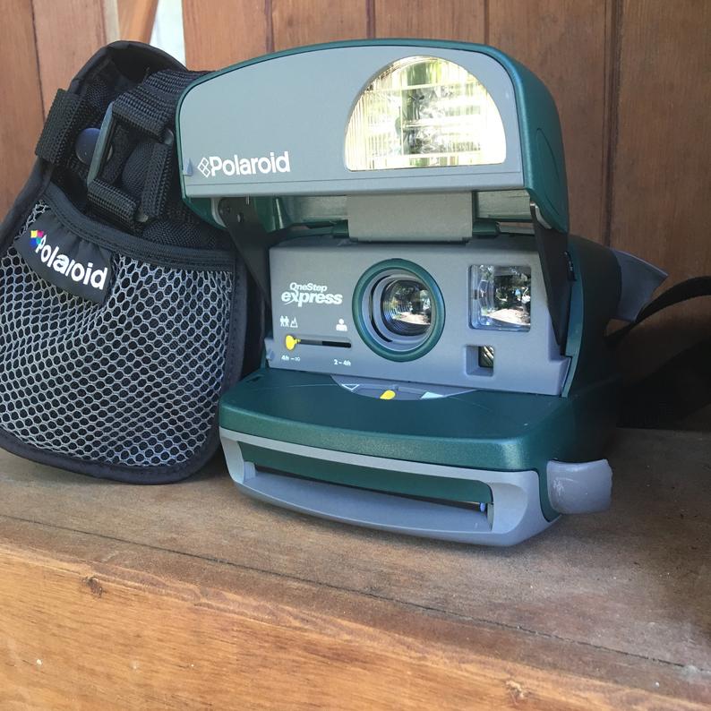 Polaroid Onestep Express 600 instant film camera, green one step, tested and working, vintage cameras carry bag autofocus analog photography