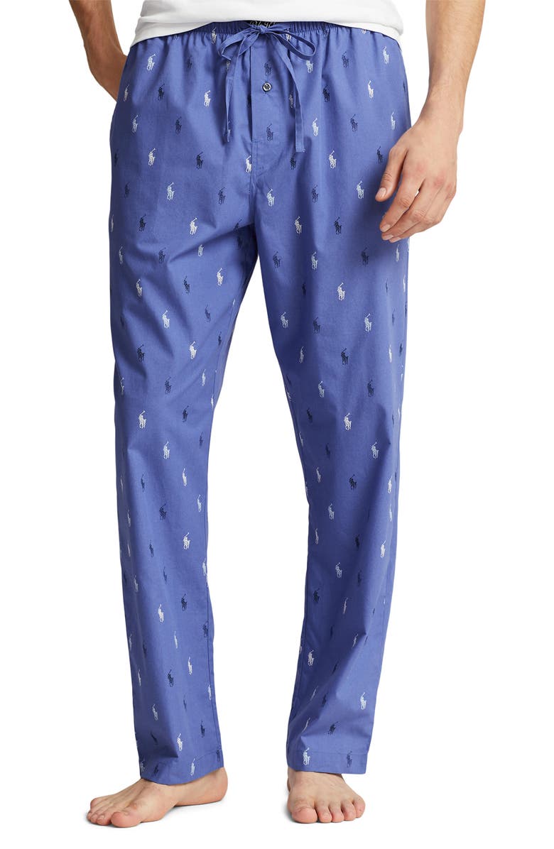 Polo Ralph Lauren Print Cotton Drawstring Pajama Pants, Main, color, Blue