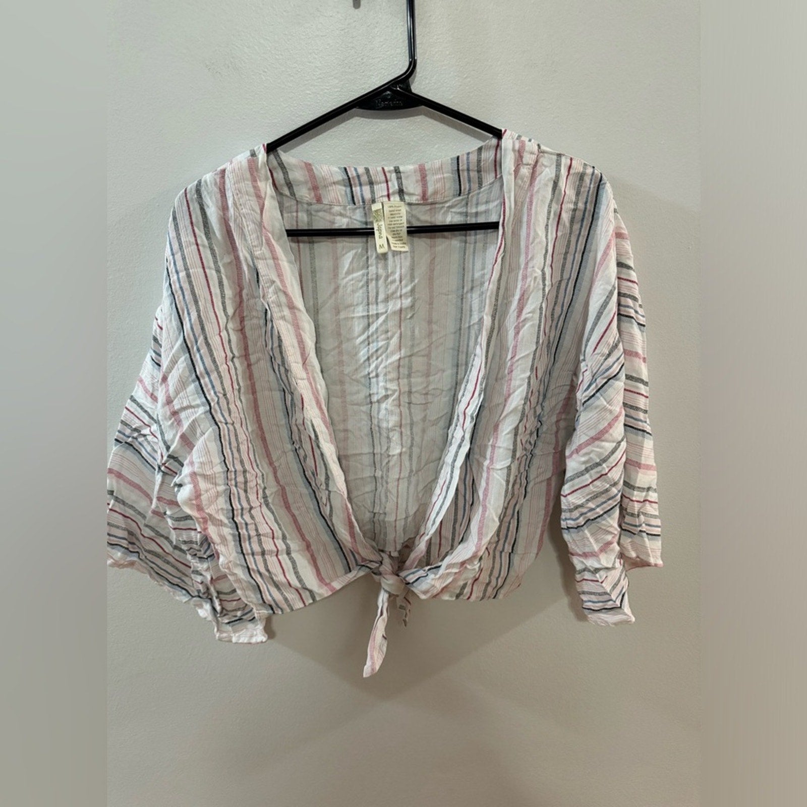 Pre-Owned MD Japna Striped White Tie Over Shirt