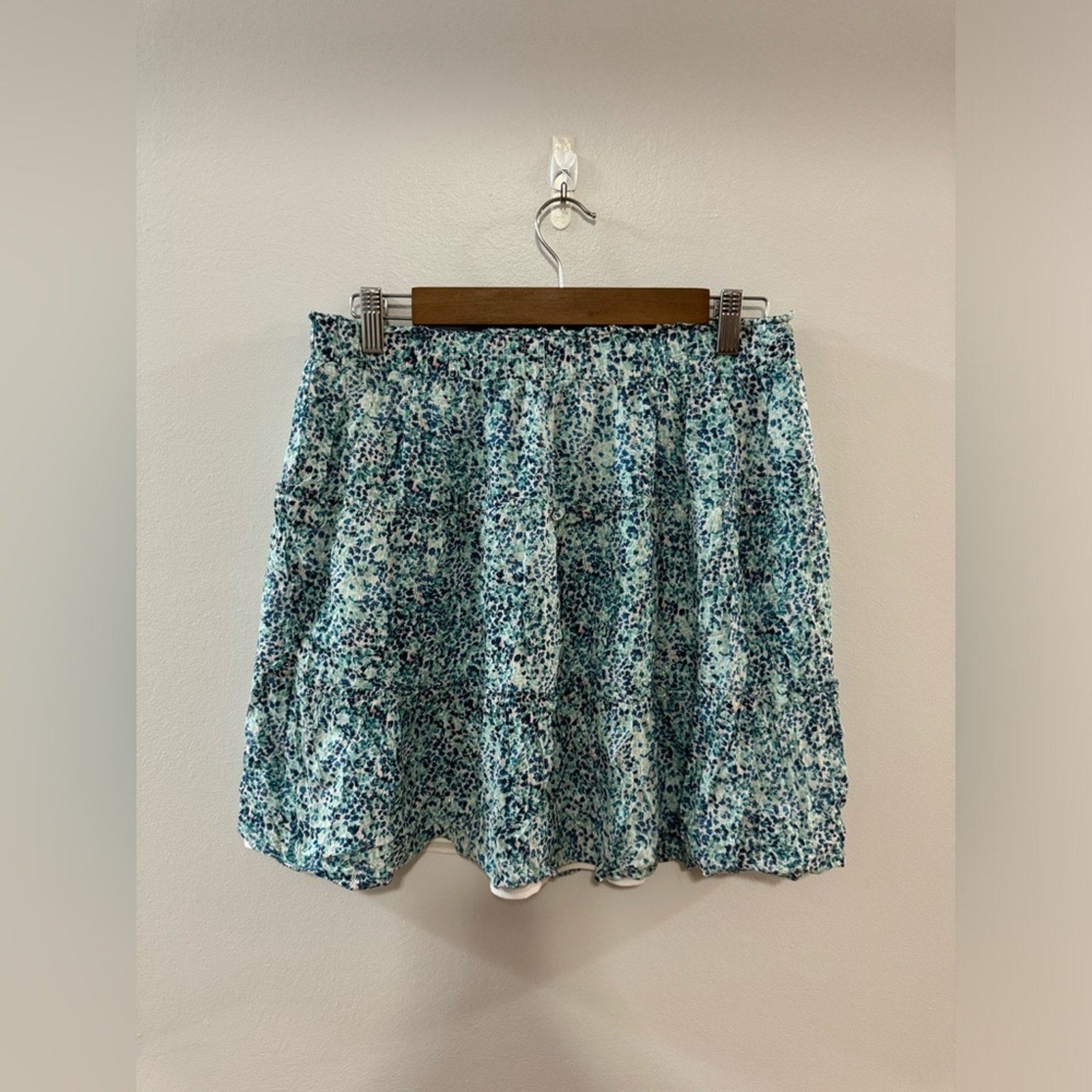 Pre-Owned MD Petite Loft Blue/White/Silver Skirt