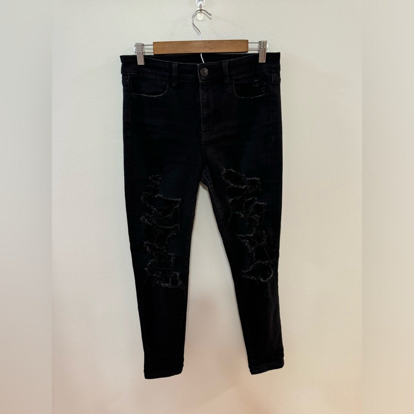 Pre-Owned Size 10 American Eagle Black Hi-Rise Distressed Jegging