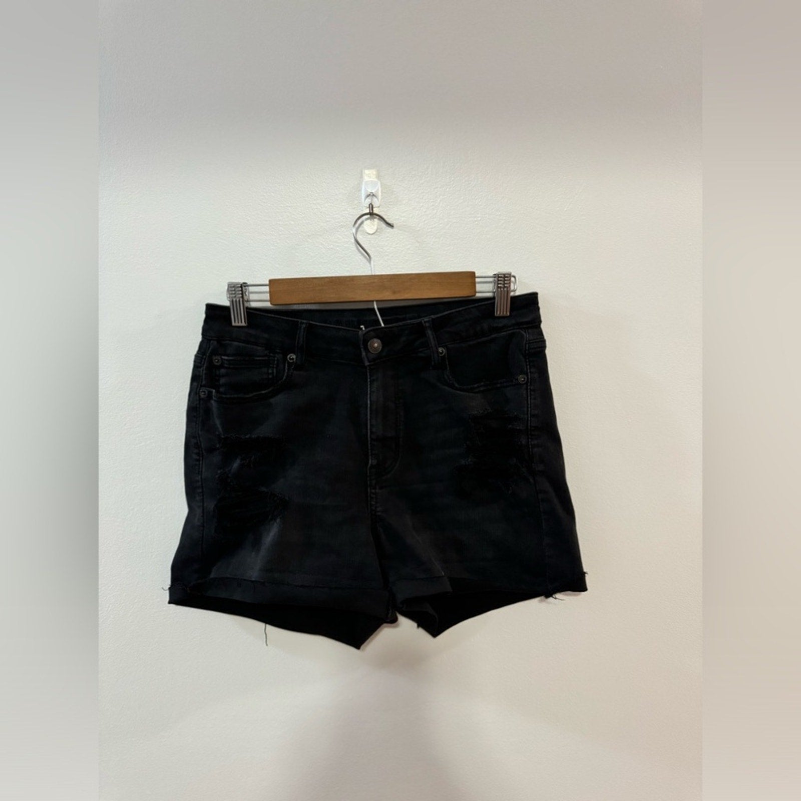 Pre-Owned Size 10 American Eagle Hi-Rise Shortie Black Distressed Jean Shorts