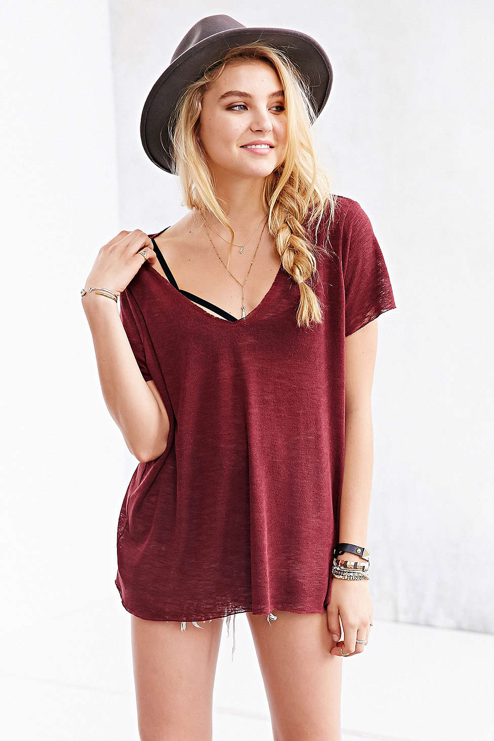 Project Social T Textured-Knit V-Neck Tee - Urban Outfitters