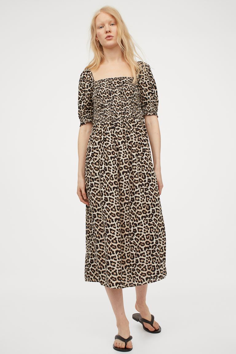 Puff-sleeved Dress - Light beige/leopard print - Ladies