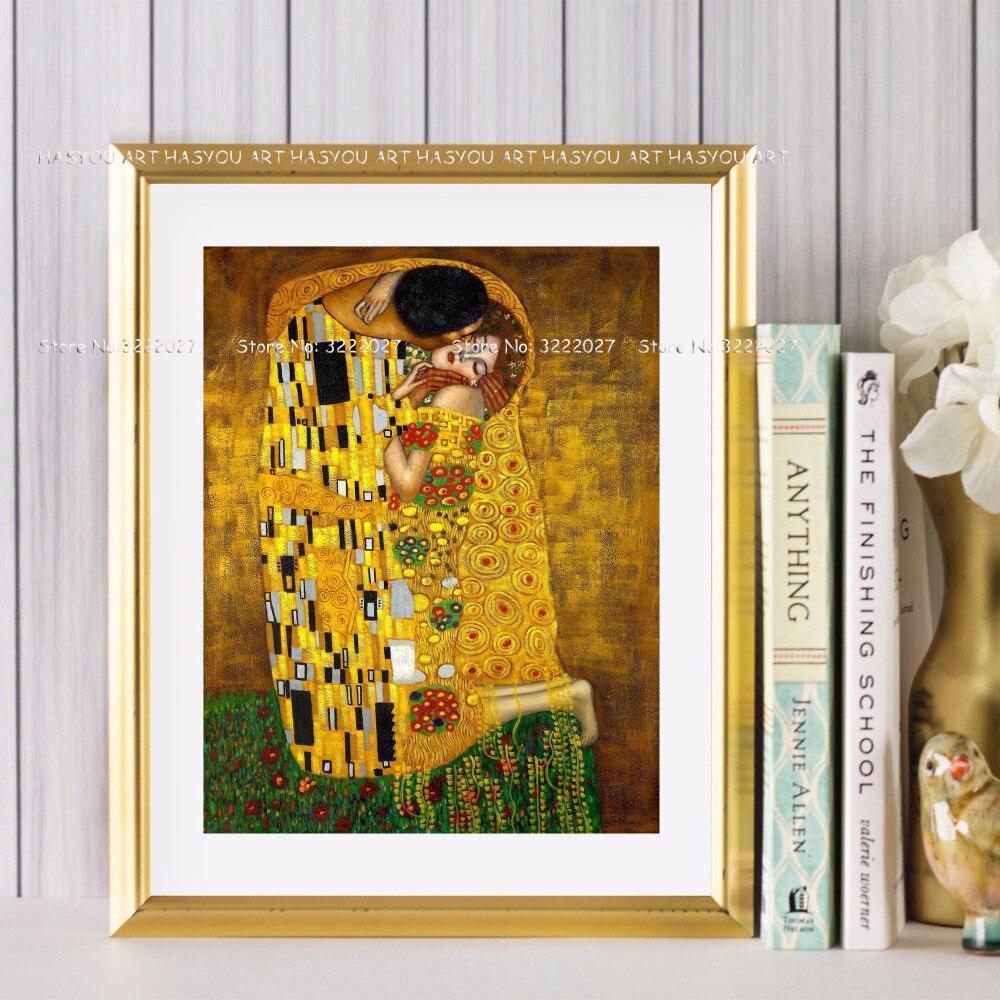 Pure Hand Painted Art Famous gustav klimt oil painting reproduct Abstract The Kiss art Canvas Painting Art