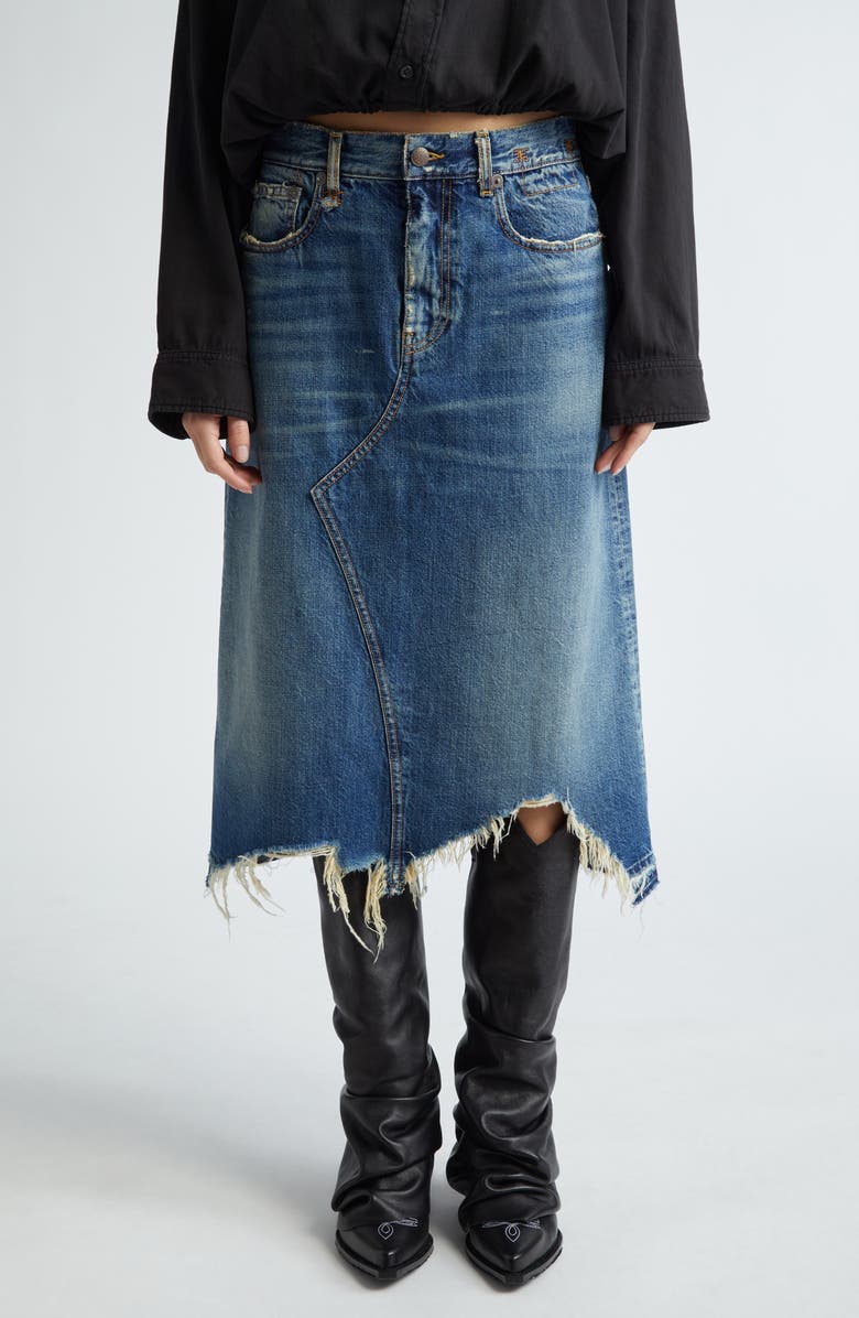 R13 Jesse Distressed Denim Midi Skirt, Main, color, Garnet Blue