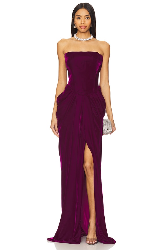 RASARIO Velvet Corset Gown in Plum | REVOLVE