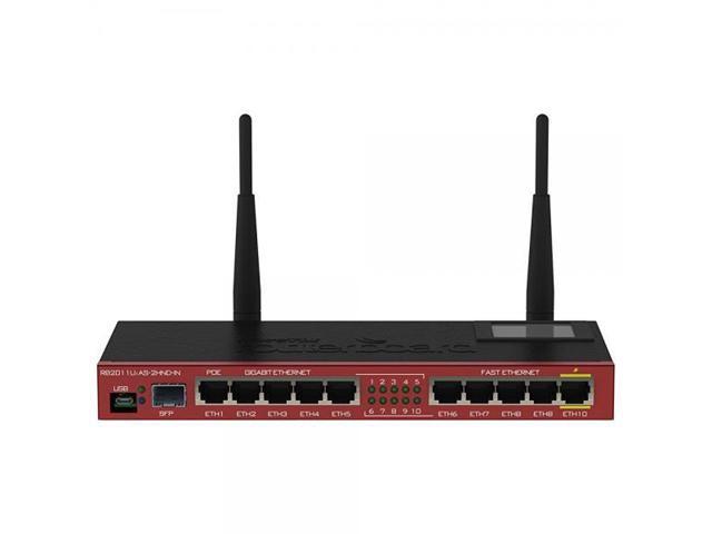 RB2011UiAS-2HnD-IN 2.4GHz AP 10-port wireless Router (5x Ethernet, 5x Gigabit Ethernet), SFP cage, USB, LCD, PoE output on Eth10, 600MHz CPU, 128MB RAM - Newegg.com