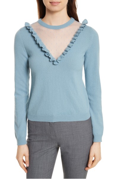 RED Valentino Point d'Esprit Inset Wool Sweater