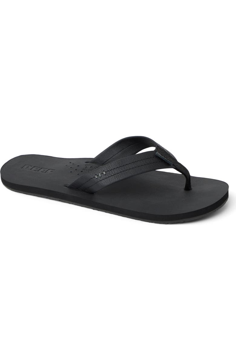 Reef 'Draftsmen' Leather Flip Flop, Main, color, Black/ Black