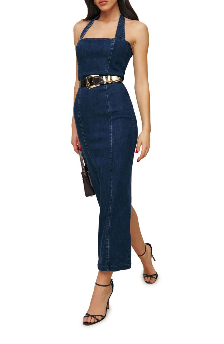 Reformation Evita Denim Dress, Main, color, Simcoe