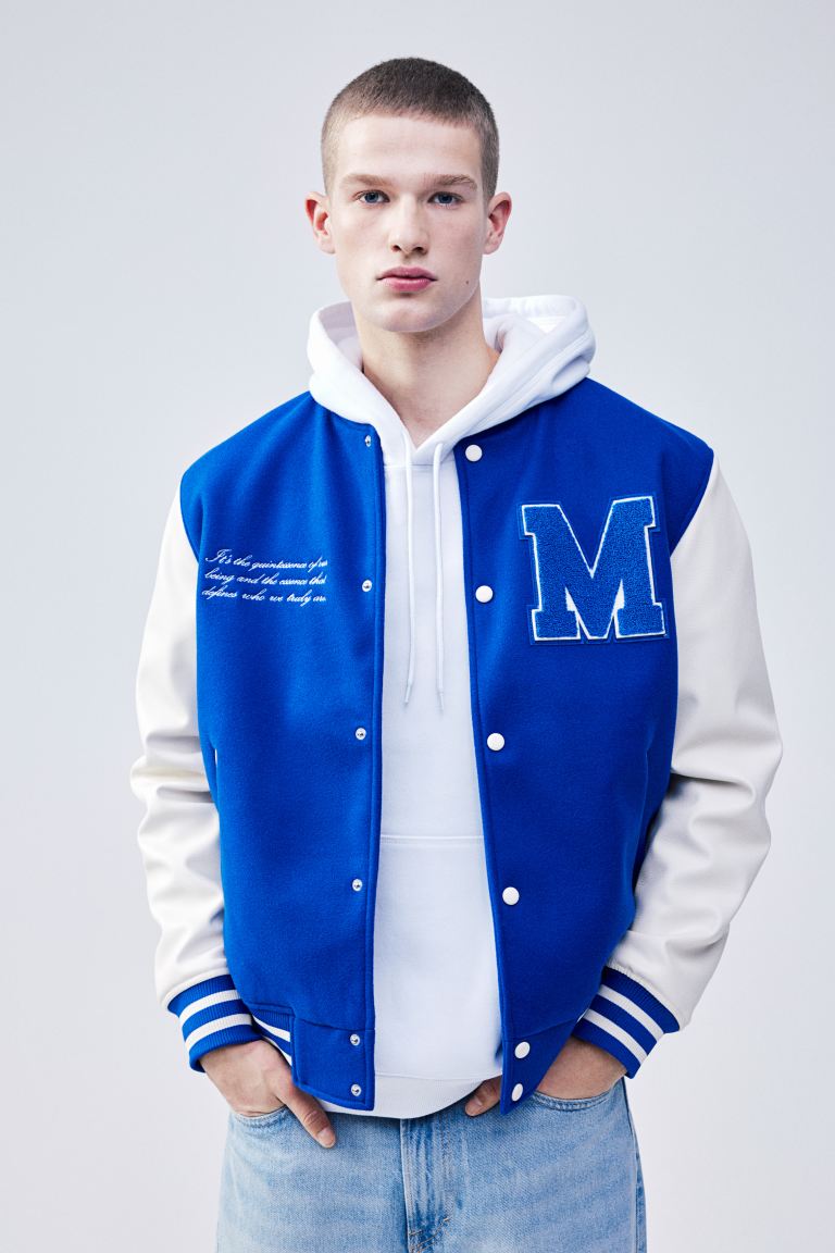 Regular Fit Baseball Jacket - Bright blue/white - Men