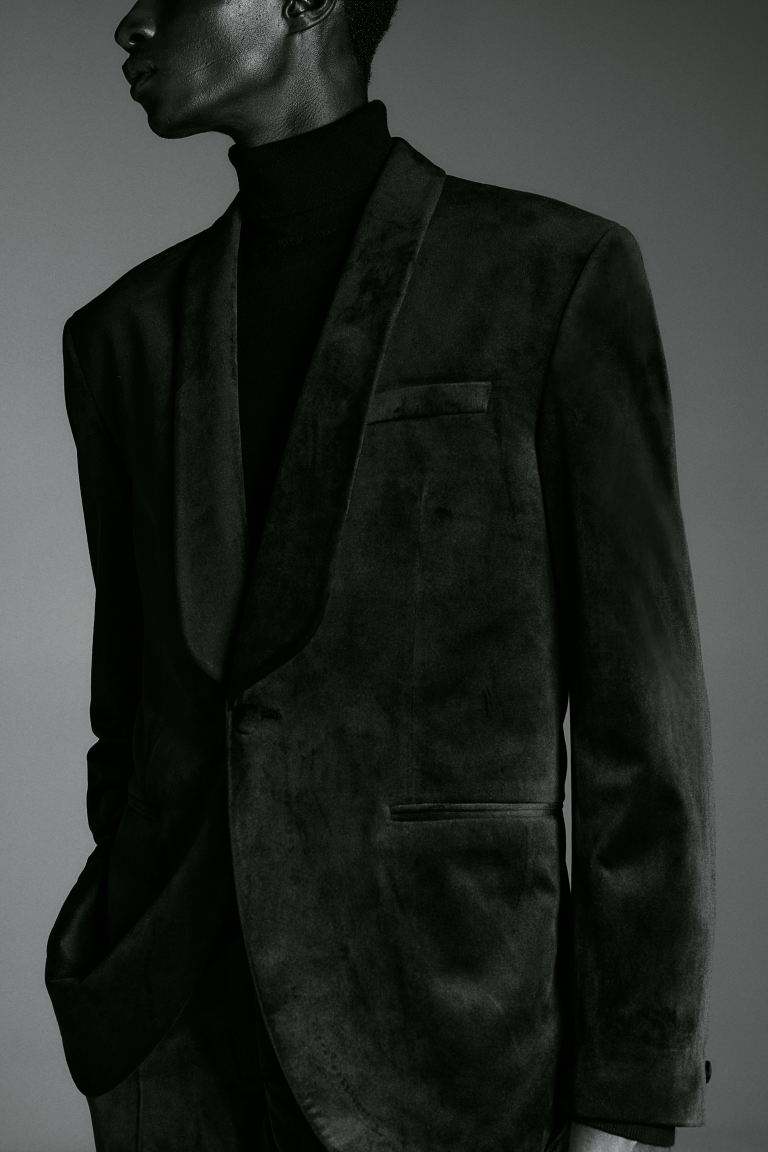 Regular Fit Shawl-collared Velvet Blazer - Black - Men