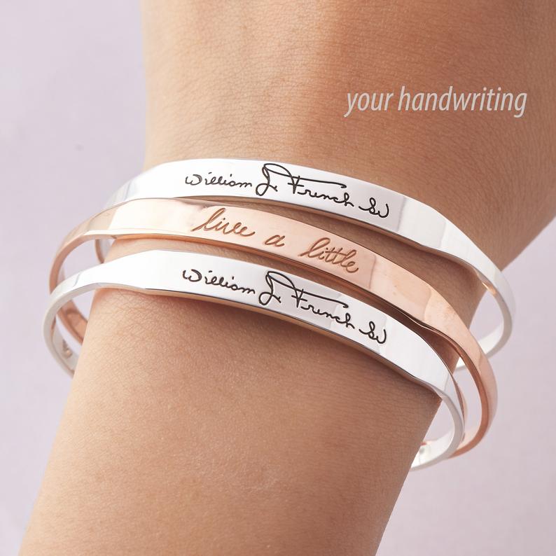Remembrance Gift • Handwritten Memorial Jewelry • Personalized Handwritten Bracelet • Silver Handwriting Bracelet • Remembering A Loved One