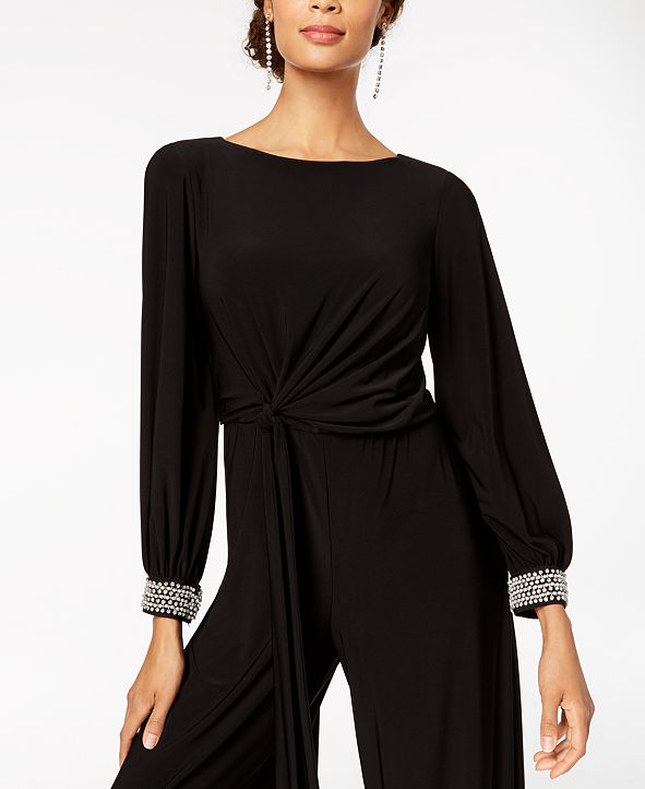 Rhinestone-Embellished Wide-Leg Jumpsuit