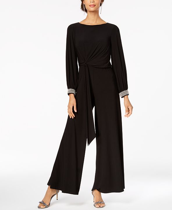 Rhinestone-Embellished Wide-Leg Jumpsuit