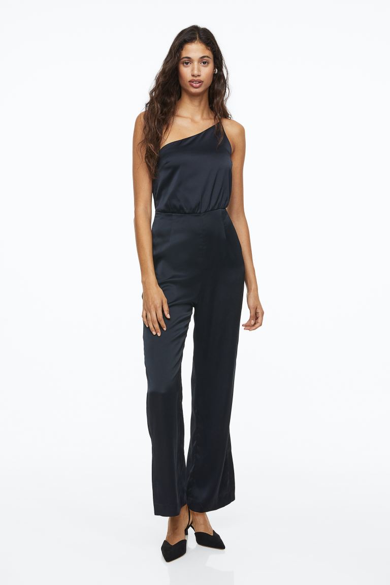 Rhinestone-strap One-shoulder Jumpsuit - Black - Ladies | H&M US