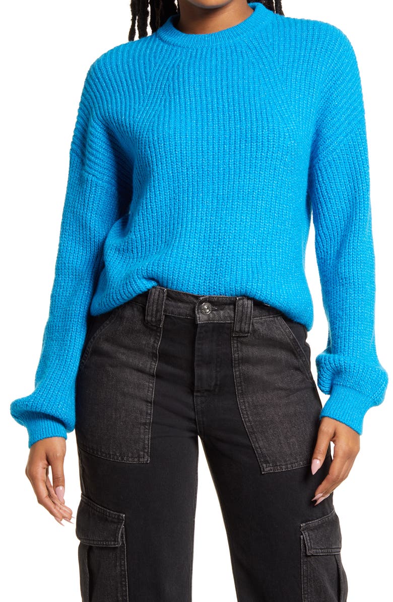 Rib Crop Crewneck Sweater, Main, color, BLUE GREECE