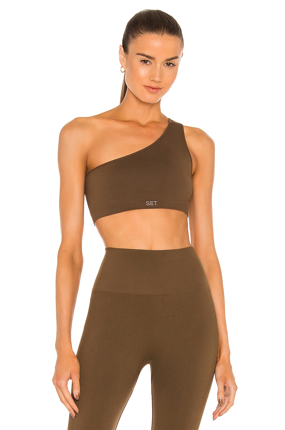 Ribbed One Shoulder Sports Bra in Brush