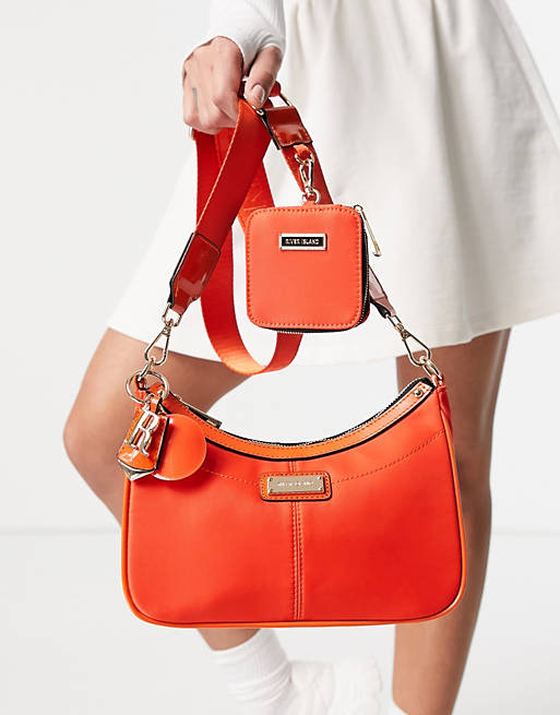 River Island 90s scoop cross-body bag in orange, 1 of 4