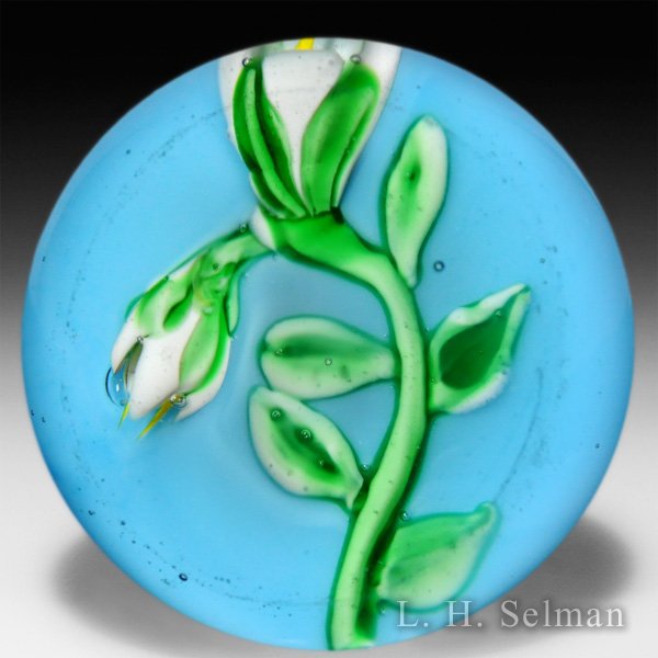 Ronald Hansen two white buds petite paperweight. by Ronald Hansen