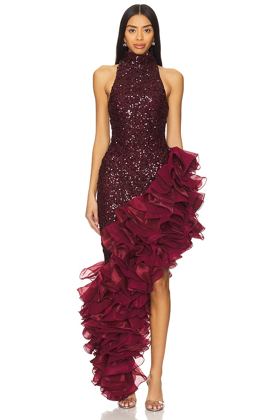 ROTATE Sequins Midi Ruffle Dress in Zinfandel | REVOLVE