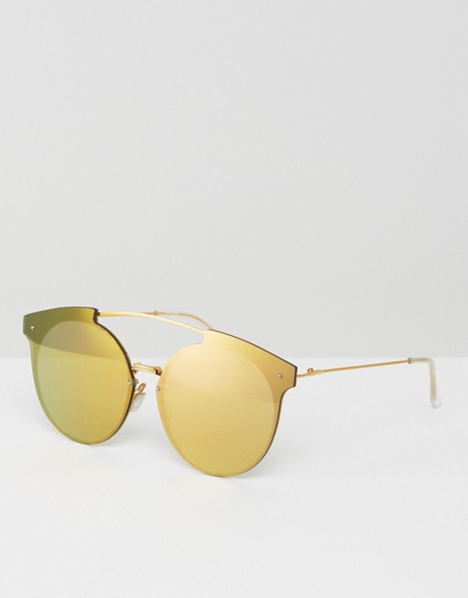 Round High Bar Sunglasses With Laid On Rose Gold Lens